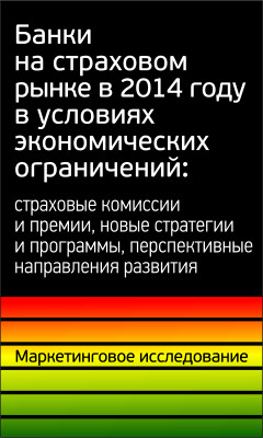 Банки на страховом рынке в 2014 году в условиях экономических ограничений Страхование от несчастных случаев в 2013–2014 гг. Каналы продаж в 2013–2014 гг. Страхование через Интернет в 2013–2014 гг. Страхование через перевозчиков в 2013–2014 гг. Страхование жизни в 2013–2014 гг. Страхование путешественников в 2013–2014 гг. Страхование через банки в 2013–2014 гг. Страхование имущества граждан в 2013–2014 гг. Ипотечное кредитование и страхование в 2013–2014 гг. ДМС за счет юрлиц на 2014 г. ДМС за счет юрлиц в Санкт-Петербурге на 2014 г. Банки на страховом рынке в 2012–2013 г. Каналы страховых продаж в 2013 г. и прогноз на 2014–2015 гг. Тендерный канал продаж страховых услуг Страхование через тендеры в 2012–2013 гг.: Страхование через банки в 2012–2013 гг.: Каско за счет юрлиц в 2012–2013 гг. Страхование спецтехники в 2013 г. |