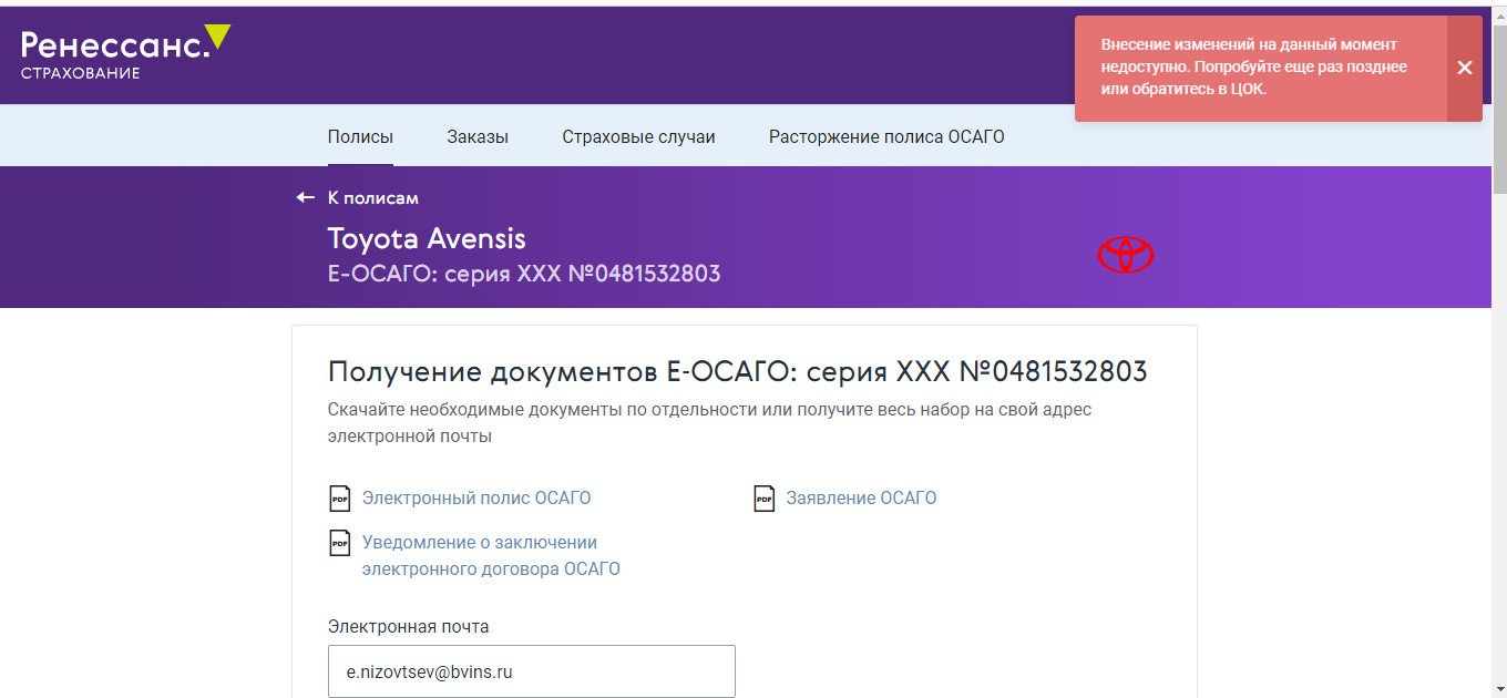 Сейчас только зашёл по вашей ссылке и перешёл в редактирование полиса: https://www.renins...