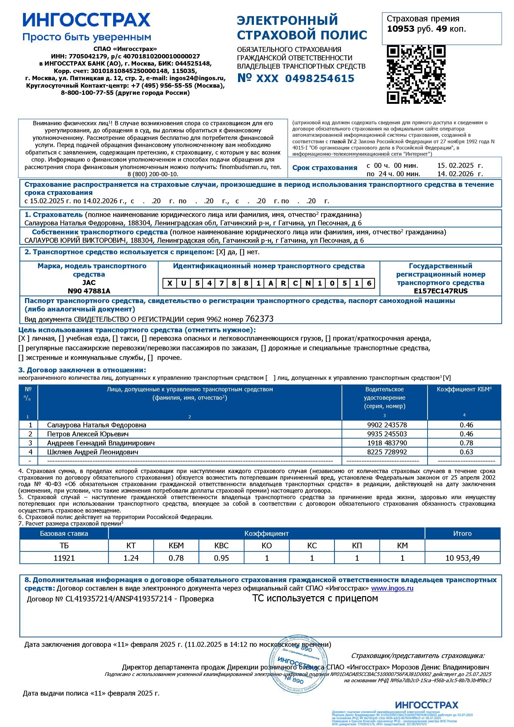 Добрый день...11.05.2025 были оформлены полисы ОСАГО ХХХ 0498250605 и ХХХ 0498254615