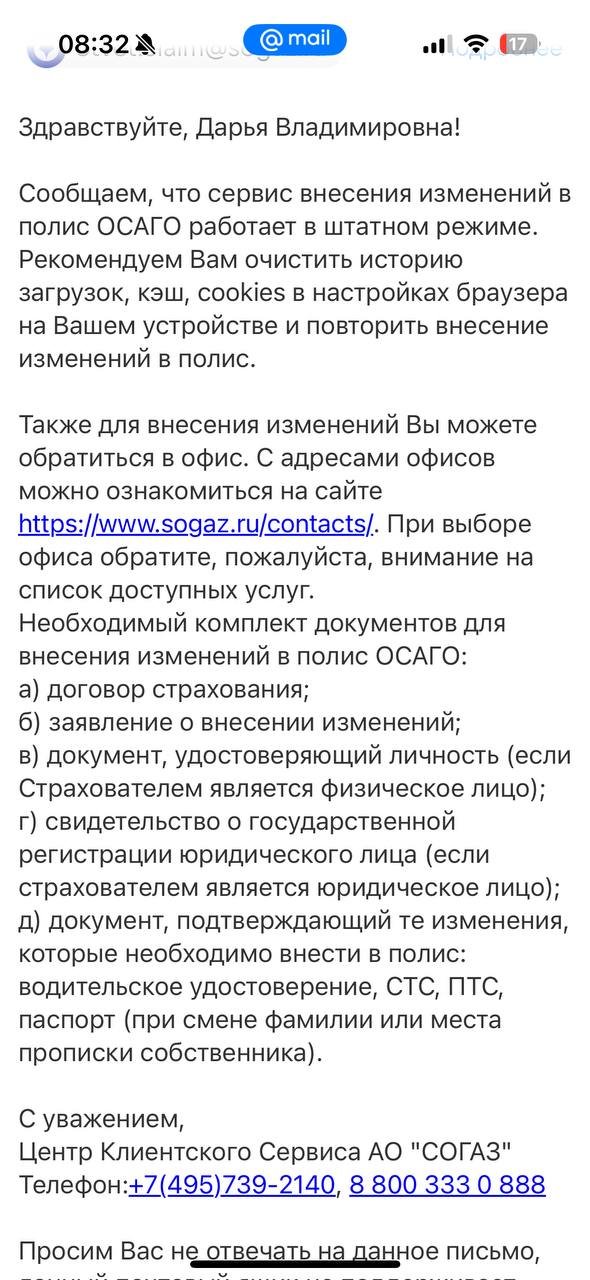 С уважением, Команда СОГАЗа