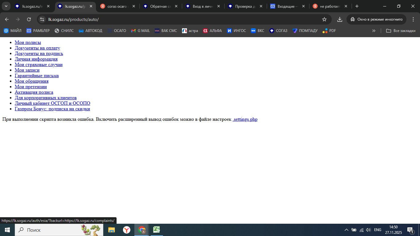 Зарегистрировался сегодня на сайте СОГАЗ и пытался рассчитать стоимость ОСАГО, но ничего не открывается, вместо сайта белая страница и список функций сайта, ни одна из которых не открывается.