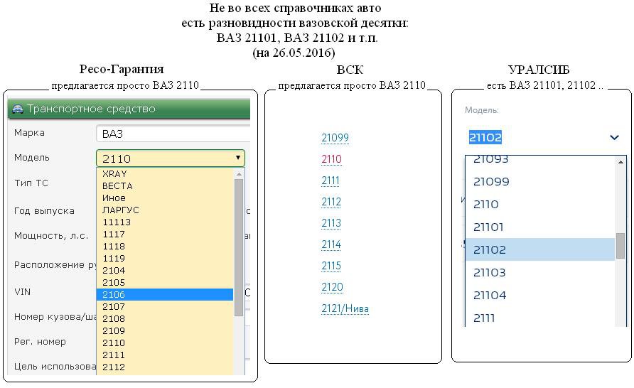 В текущем бумажном ОСАГО у меня вбито ВАЗ 21102. Ваш сайт и ВСК