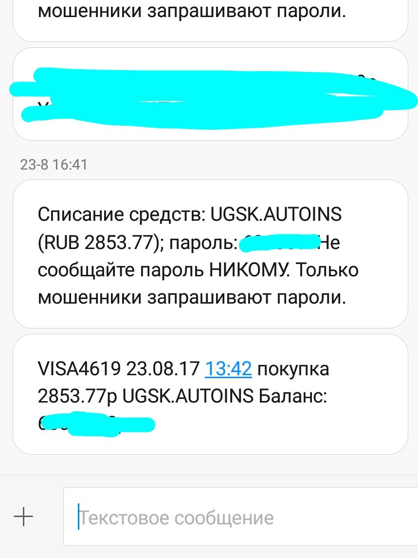 Мне пришло смс «Полис ОСАГО ХХХ0011549986.СК-АО «ГСК „Югория“.Срок:24.08.17-23.08.18.Период:24.08.17-23.11.17