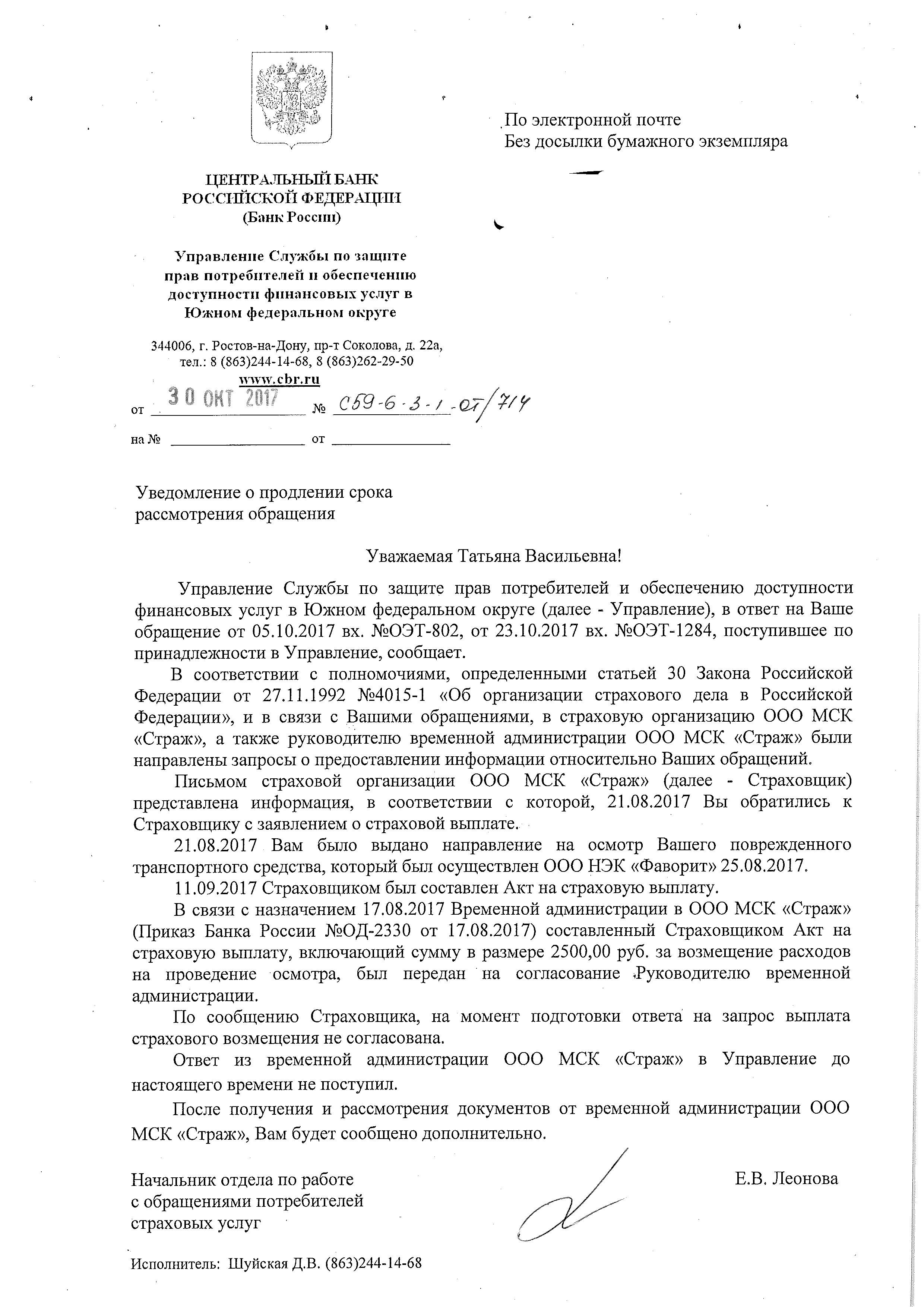 Если коротко — ЦБ направил запрос в Страж, на который ответ не получил. Ввиду этого, ЦБ продлят срок рассмотрения моего обращения еще на 30 дней.