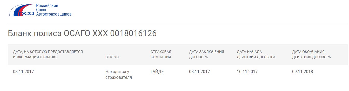 Пришла СМС с номером Полис ОСАГО ХХХ0018896695. СК-АО «СК ГАЙДЕ».Срок:21.11.17-20.11.18.