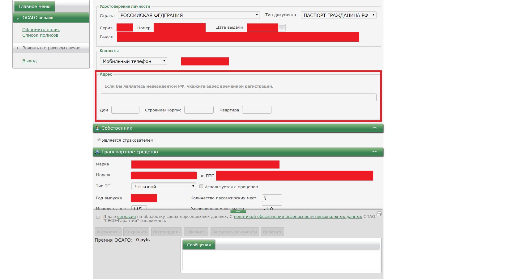 Невозможно сохранить полис е-осаго