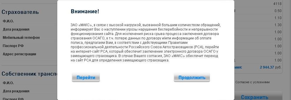 Ваши замечания приняты в работу нашими техническими специалистами для анализа и устранения возможных неполадок. Пожалуйста, повторите Вашу попытку позже. Также напоминаем, что Вы можете оформить полис на сайте РСА или посетить с этой целью офис нашей компании.