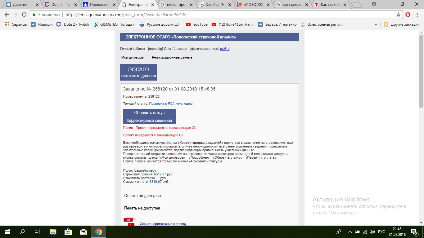 Предыдущий год делал ЕОсаго в ПСА, а сейчас не получается, уже столько раз данные проверял и фото документов делал, все бесполезно. Предполагаю, что проблема с СК ПСА которая просто не хочет заключать договор