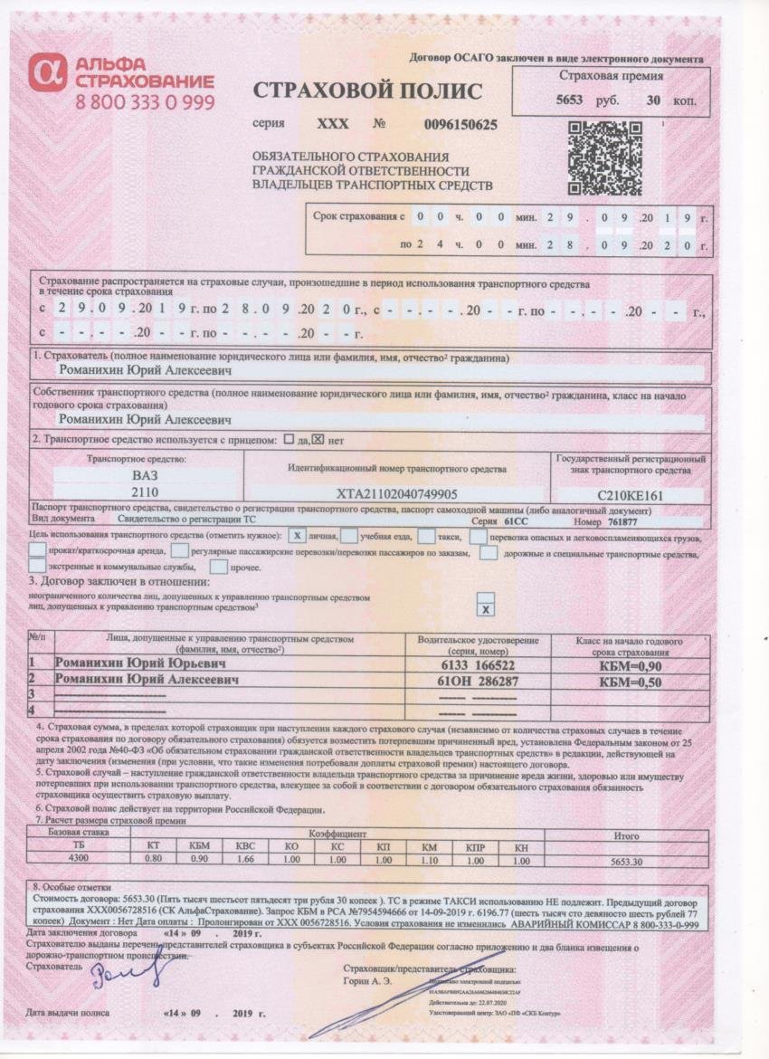 Уважаемые оказывается я рано вас поблагодарил. Повторяюсь верните мене денежные средства, на карту сбера с которой производилась оплата за полис ХХХ№0096150625 от 14.09.2019.- документы вам представлены, полис вступает в силу с 29.09.2019., а что за изменения меня вообще не волнуют, у вас имеются документы по которым вы обязаны расторгнуть и вернуть деньги на карту.В противном случае будем общаться с компитентнами органами, а так же с РСА и ЦБ. ВЕРНИТЕ деньги за ПОЛИС ХХХ № 0096150625 -остальные предложения не приемлимы.