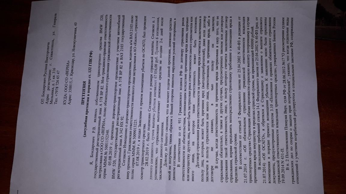 До судебную претензию уже отправил, теперь жду, что ответят в страховой, а с ответом- в суд! Видимо путь решения проблемы только такой, к сожалению.