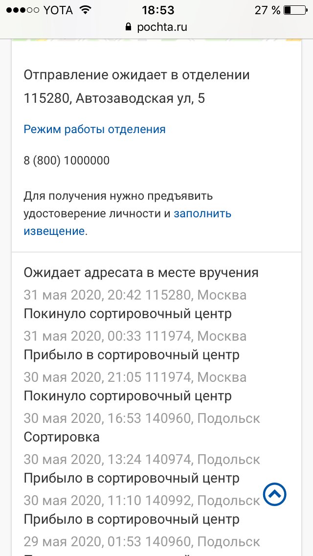 Наш курьер 05.06.2020г. последний раз посещал почтовое отделение, однако Ваши документы не были переданы нашему сотруднику. Информацию о Вашем письме передали в ответственное подразделение, письмо будет получено до 10.06.2020г.