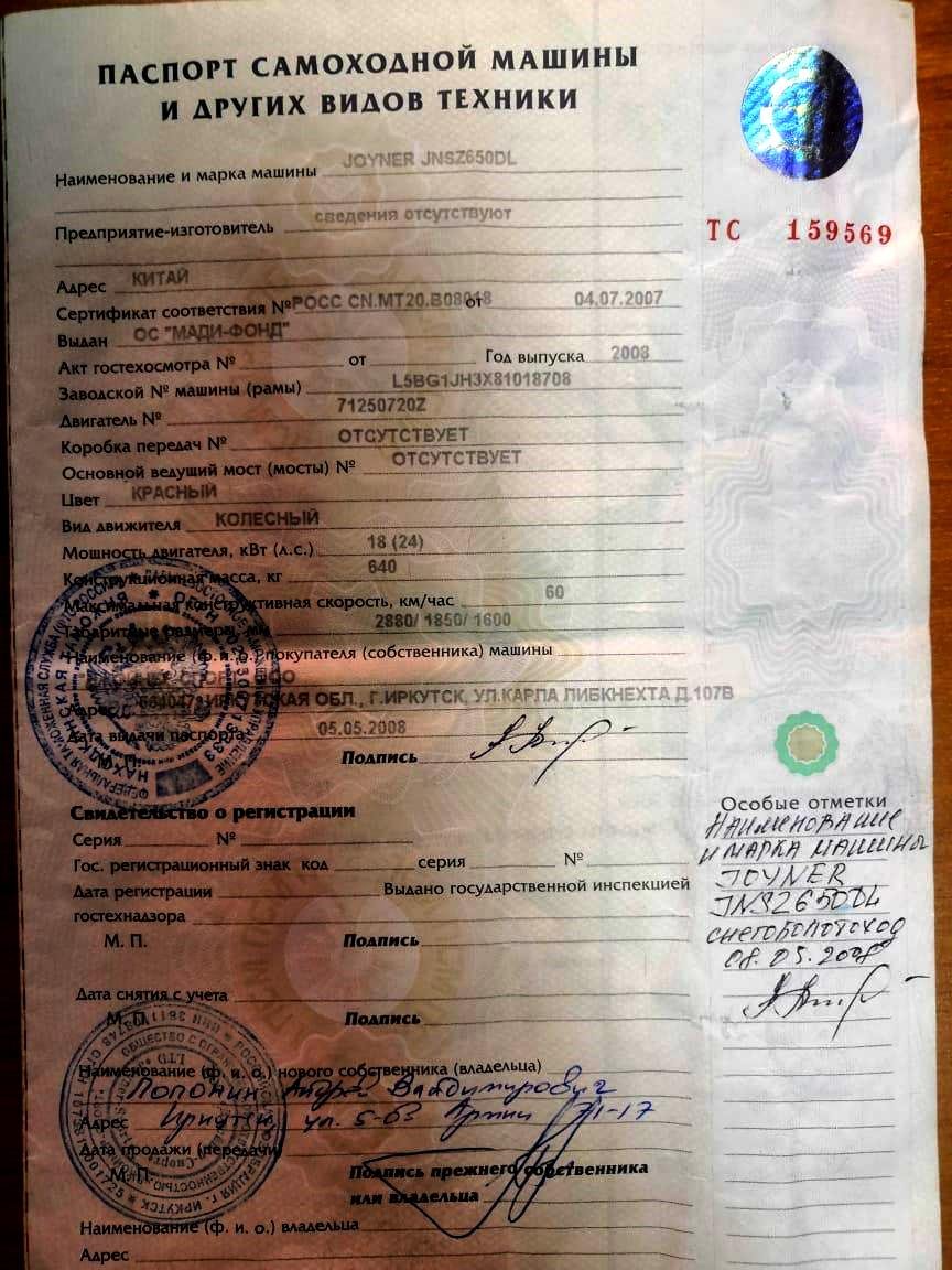 вы там недалекие совсем, вы аннулировали полис настоящий с верными данными, вот вам Паспорт самоходной машины на него, это не легковой автомоибль, на легковой выдается ПТС, а не ПСМ