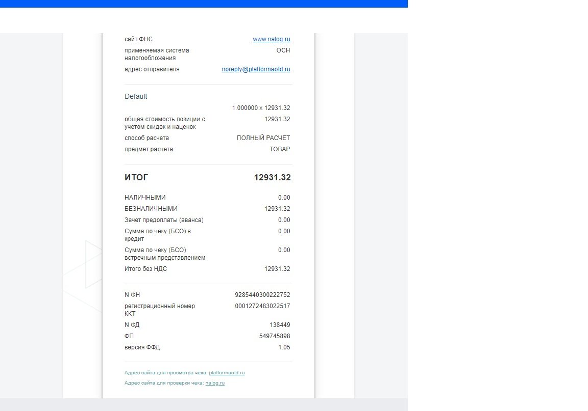 Напомню вам адрес с которого оформлялся полис и чек, который пришел на этот адрес: