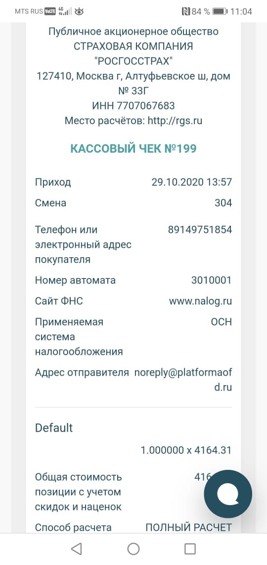 31.10.2020 был заключён договор электронный ОСАГО, денежные средства списали в полном объёме, страховой полис не предоставили, тех.поддержка ответила спустя неделю после обращения, попросили данные о списании денег, отправили им данные, и всё тишина на этом,