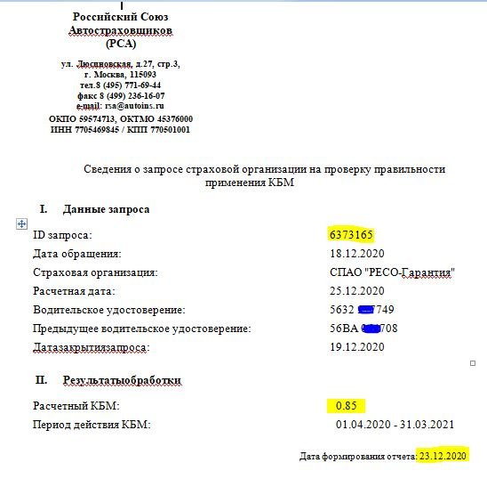Мною был оформлен договор в РЕСО-ГАРАНТИЯ ОСАГО МММ №5033126791 от 11.12.2019 КБМ 0.5, никаких происшествий за год не случилось, Теперь при оформлении нового полиса ОСАГО мне ставят КБМ 0,85.Обращался в страховую компанию по месту жительства они ничего сделать не могут, при запросе в РСА какая то ошибка.Ничего не понятно, жду ответа от СК., чуть позже напишу чем закончилось, пока сплошной негатив.