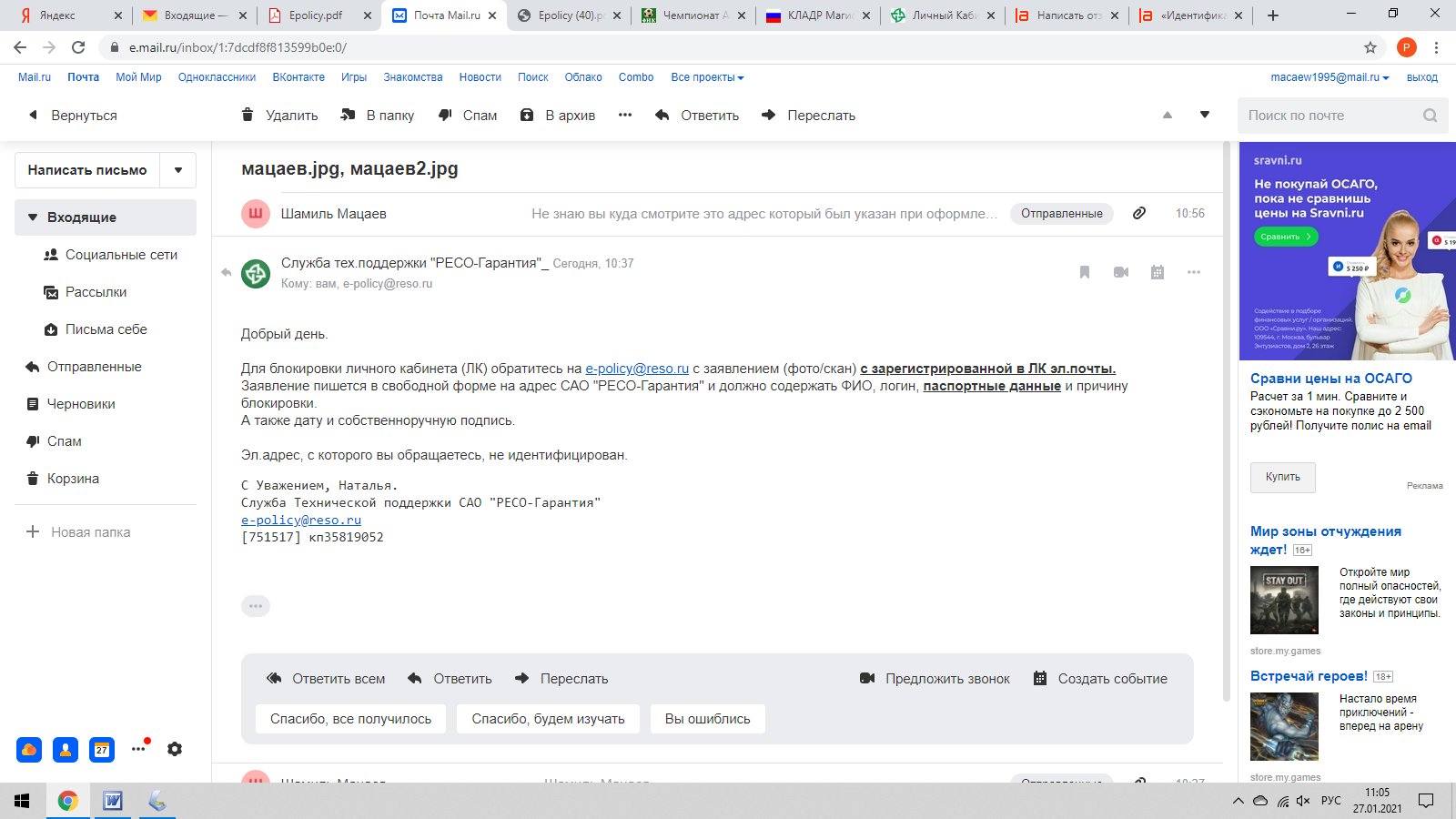 Получил вот такой ответ. В ответ на мое собственноручное заявление я получил что адрес электронной почты не идентифицирован. Нужно мозги идентифицировать