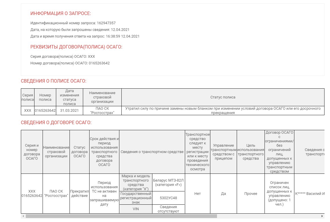 Полис восстановили 10 апреля, сегодня 12 апреля а по безе РСА полис «Прекратил действие» (смотрите скриншот) из за этого я не могу пройти техосмотр и начать использовать трактор.