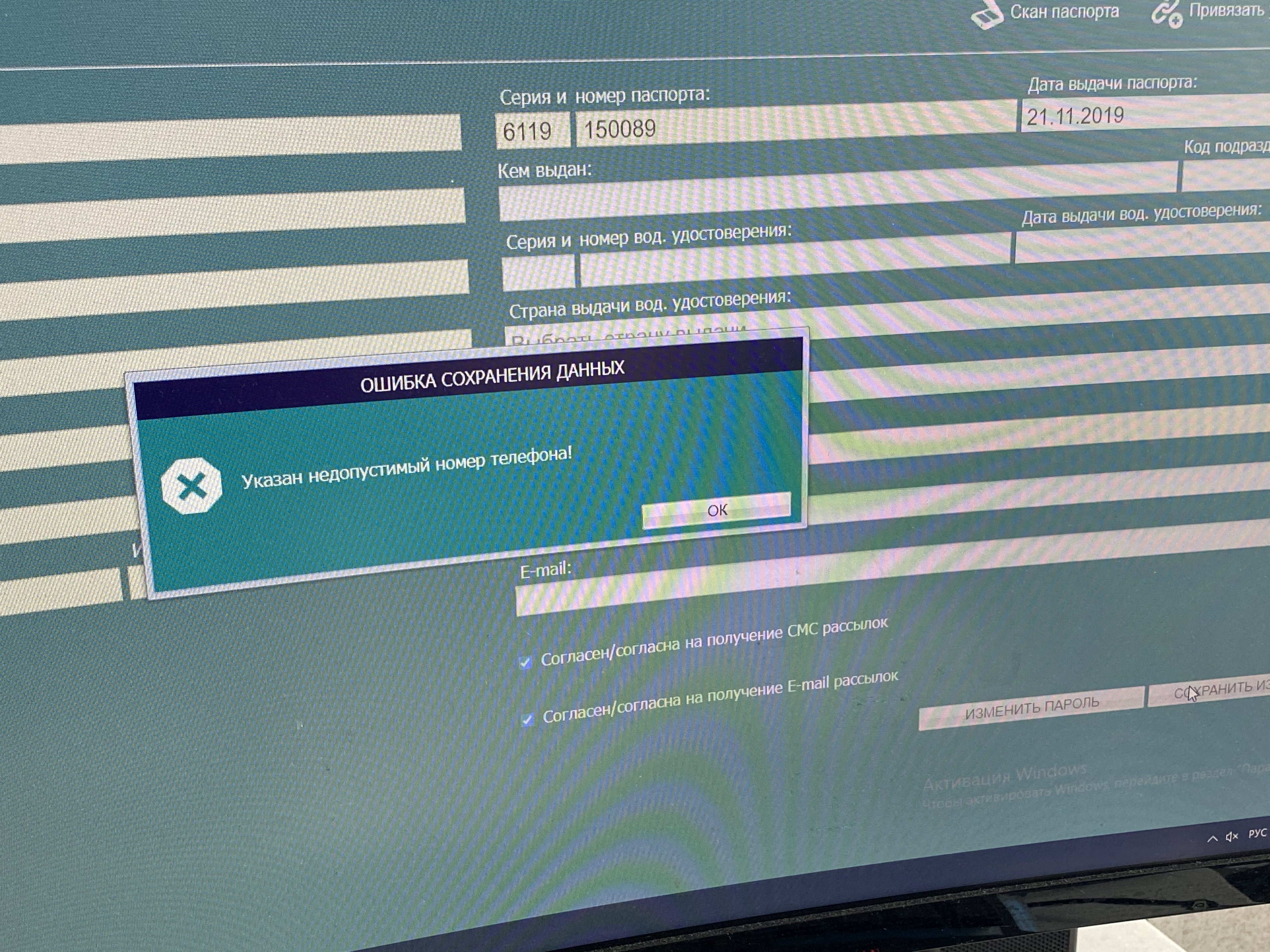Скан паспорта там приложился, но выбивает недопустимый номер телефона, но я его не могу понять, да и зачем непонимаю, там все верно указано…