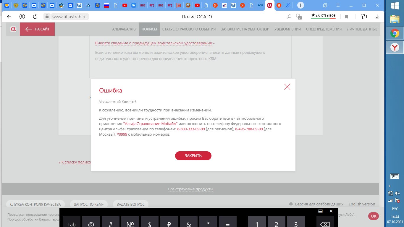 Хотел внести изменение в полис ОСАГО. Создал личный кабинет, а полис через поиск не подтягивается, а пишет, что найден. Полис ХХХ 0193462874… логин bakarov.islam.77@mail.ru