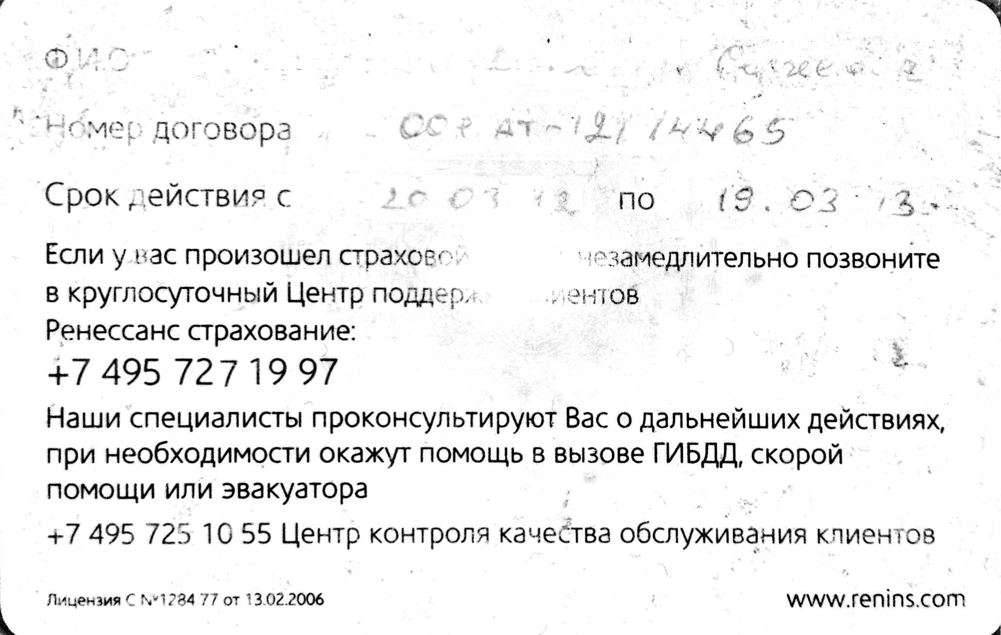 Время действия полиса 19 марта 2012 по 20 марта 2013.