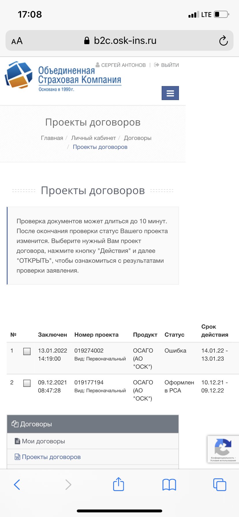 Утра доброго, вбиваю свои данные при расчете всё корректно отображается. Перехожу в оформление полиса «ошибка». Пять раз проверил всё до последней буквы и цифры. Всё равно ошибка. Что сие может означать?