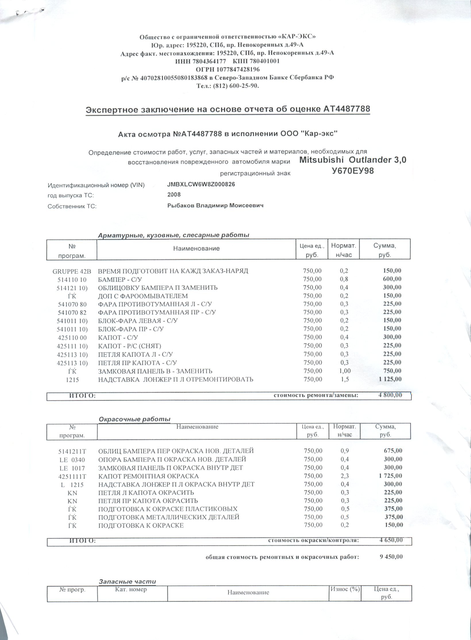 Оценка стоимости работ — частный случай, уже выплаченных денег в принципе достаточно для ремонта в простеньком сервисе, при условии некоторой экономии на покупке запчастей.