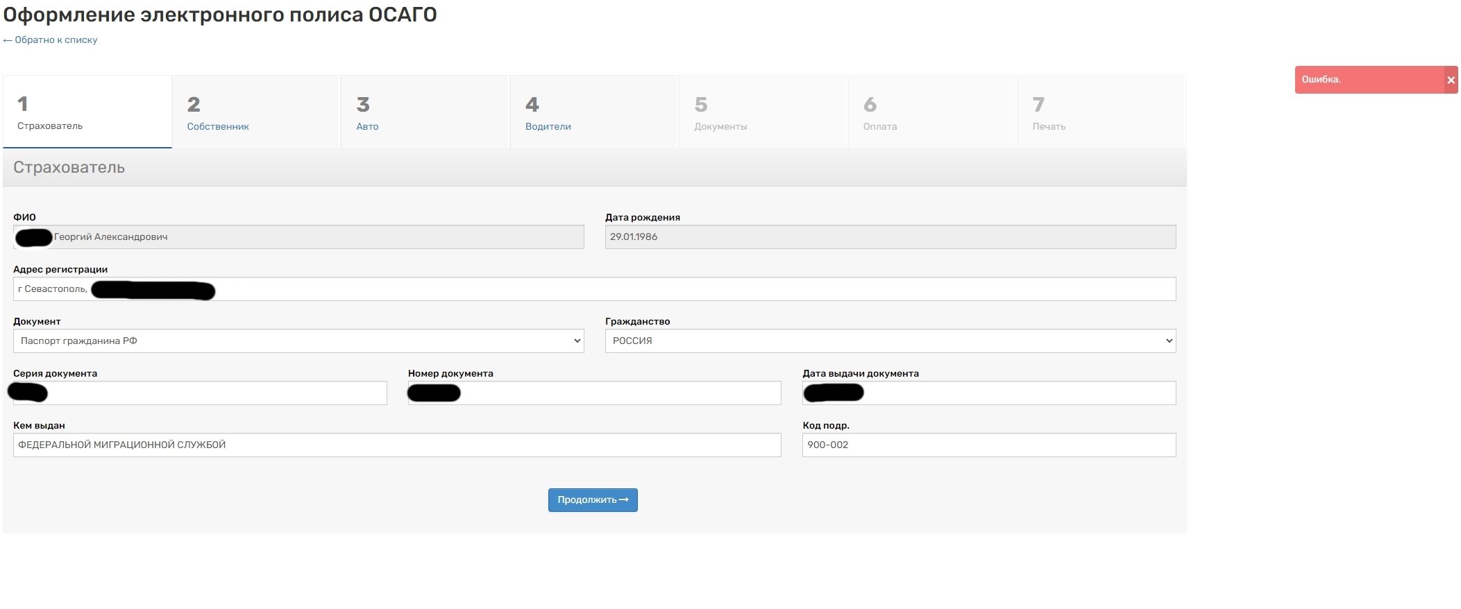 Ранее оформлял полисы без проблем, 3 полиса в кабинете действующие.