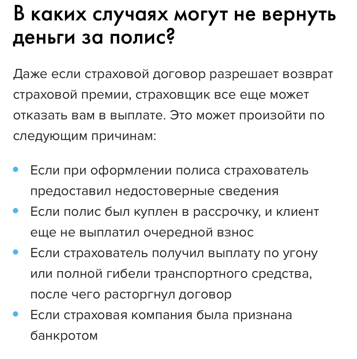 В связи с тем, что отказ от договора страхования производится по Вашей инициативе, САО «ВСК», руководствуясь ст. 958 ГК РФ сообщает об отсутствии правовых оснований для возврата Вам уплаченной страховой премии.