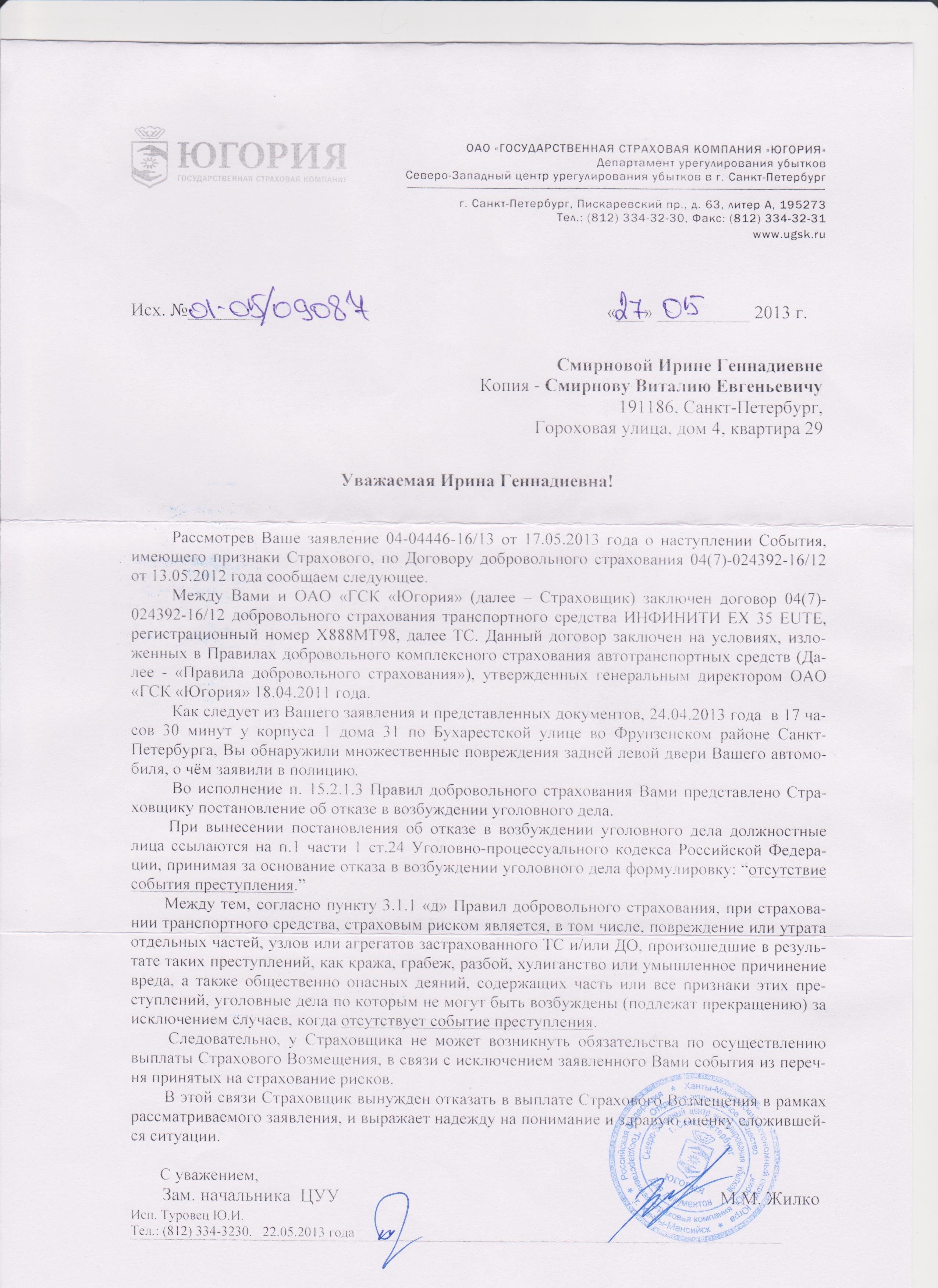 Мои заявления, были написаны после подробной консультации, по каждому случаю, с менеджерами Югории! У меня сложилось впечатление, что они специально дают советы, для дальнейшего отказа!!! В заявлении «без справок», я могла написать все что угодно, т.к. Точно не знаю когда появилась царапина- а менеджер сказала писать, что я была на парковке!