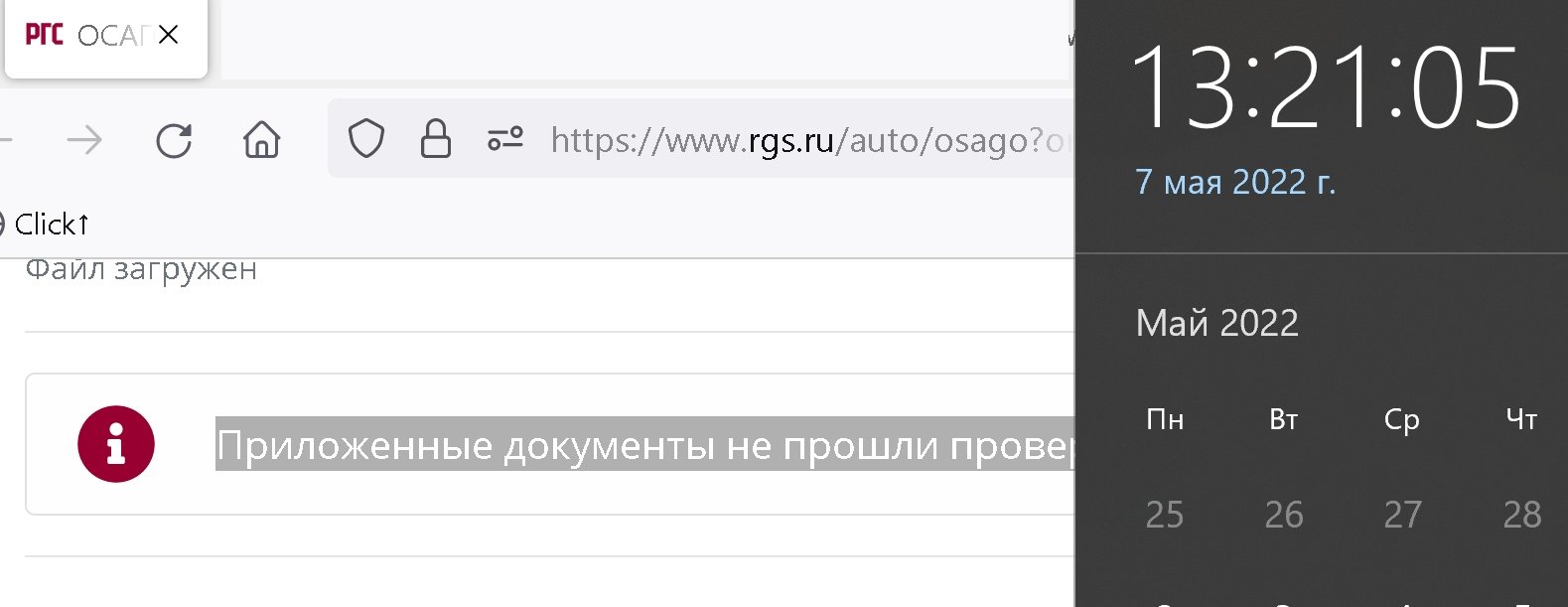 Не первый год оформляю полис ОСАГО в этой компании. И каждый раз компания прилагает усилия для затруднения этого оформления. За последние несколько дней я сделал несколько десятков попыток для продления полиса ОСАГО ХХХ №0172199394. Каждая попытка заканчивается одинаково: «Приложенные документы не прошли проверку.» И это — несмотря на наличие действующего полиса ОСАГО в этой же компании! То есть — ВСЕ необходимые