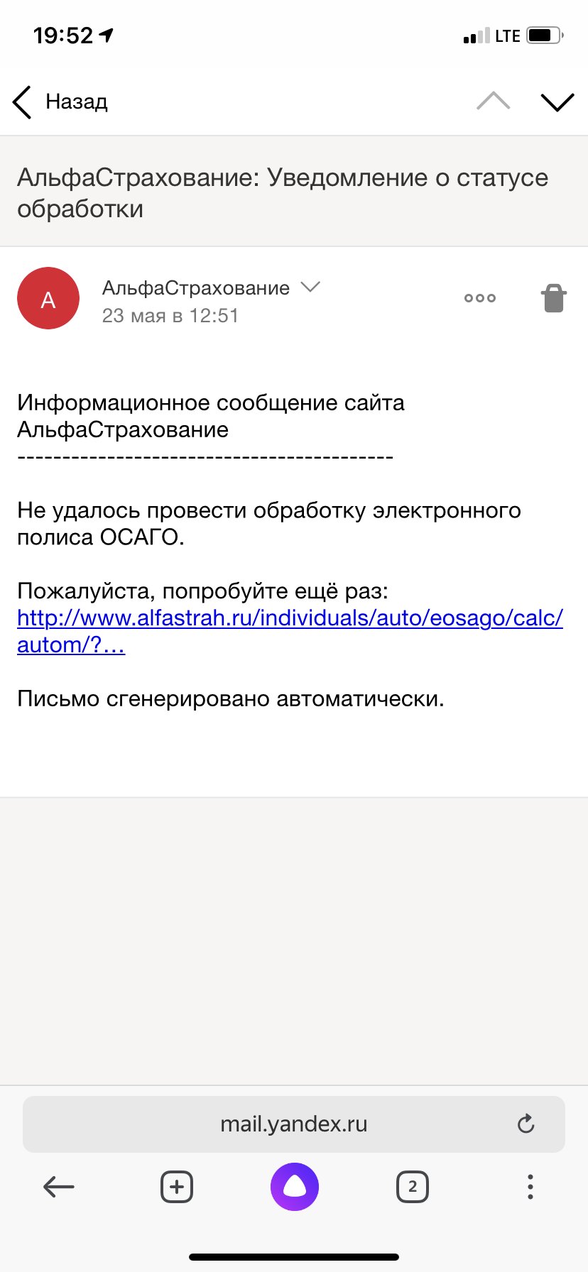 С уважением, Служба контроля качества сервиса АО «АльфаСтрахование»