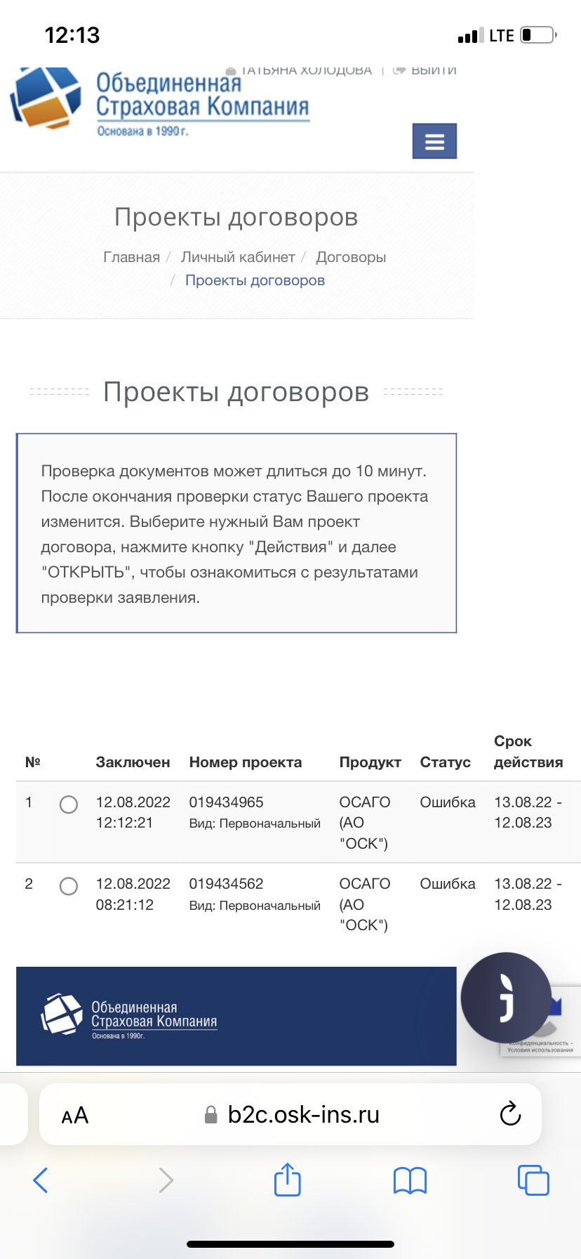 Доброго утра, приобрела автомобиль, но вот купить полис не могу. А в ГАИ без полиса на учет не ставят, автомобиль ВЕСТА 2020года. Получается ошибка в конечной точке. Идентифицирующие сведения следущие Холодова Татьяна Васильевна,xolodtany@mail.ru.