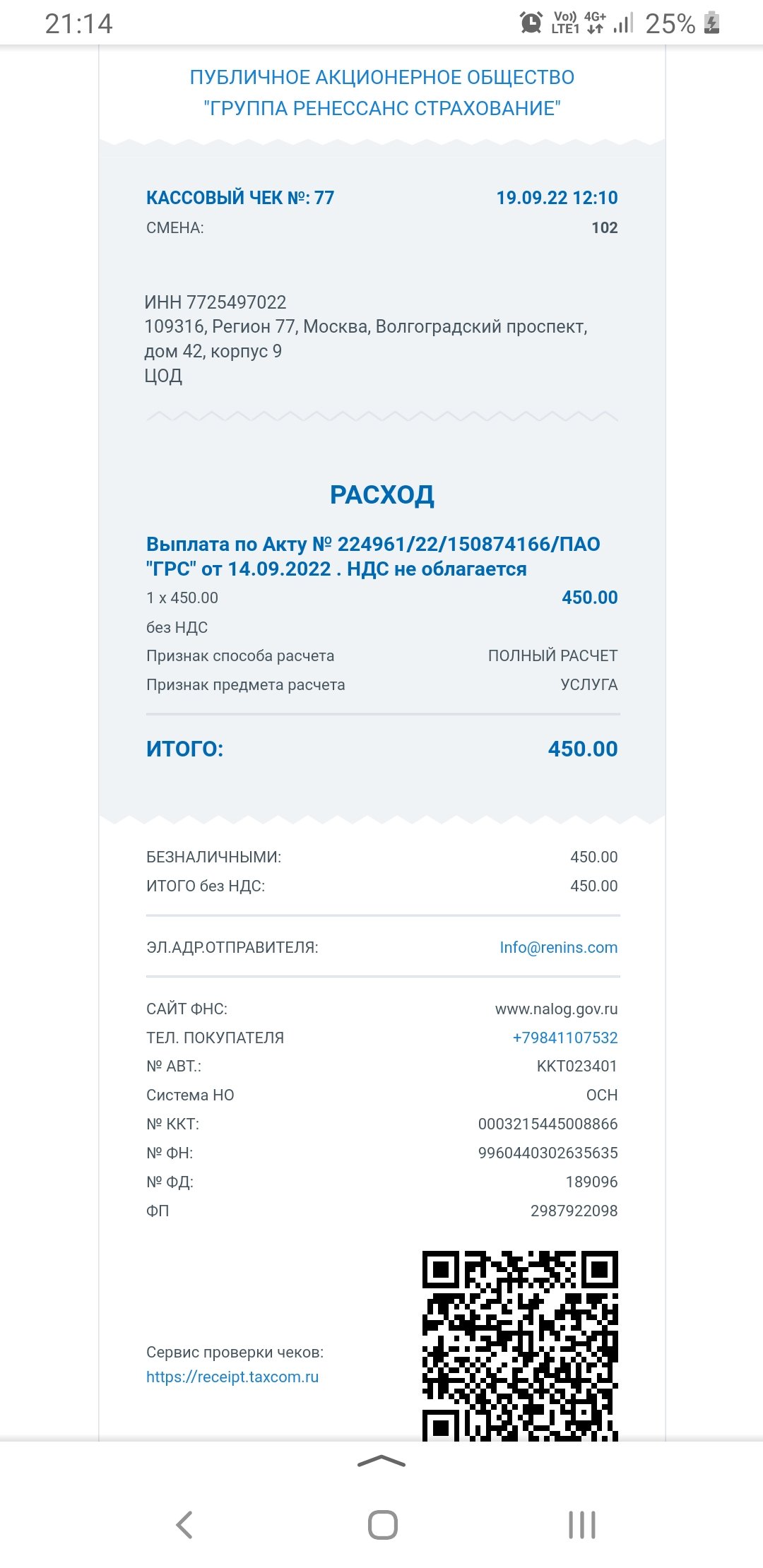 Документы от вас мы получили 7 сентября, выплата была произведена 16 сентября.
