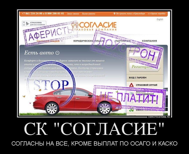 Согласие настолько нагло себя ведёт что живу даёшься! Но как красиво врет и блефует типа разбираться в претензии будет!!! Согласие! Вы в данном случае все уже плохое сделали сколько смогли и больше зла уже в данном случае не принесёте а добра от вас нет и не было никогда. А автор поделился тут своим несчастьем и наверное хотел людей предупредить чтобы они у вас ничего не страховали. Вот и все!