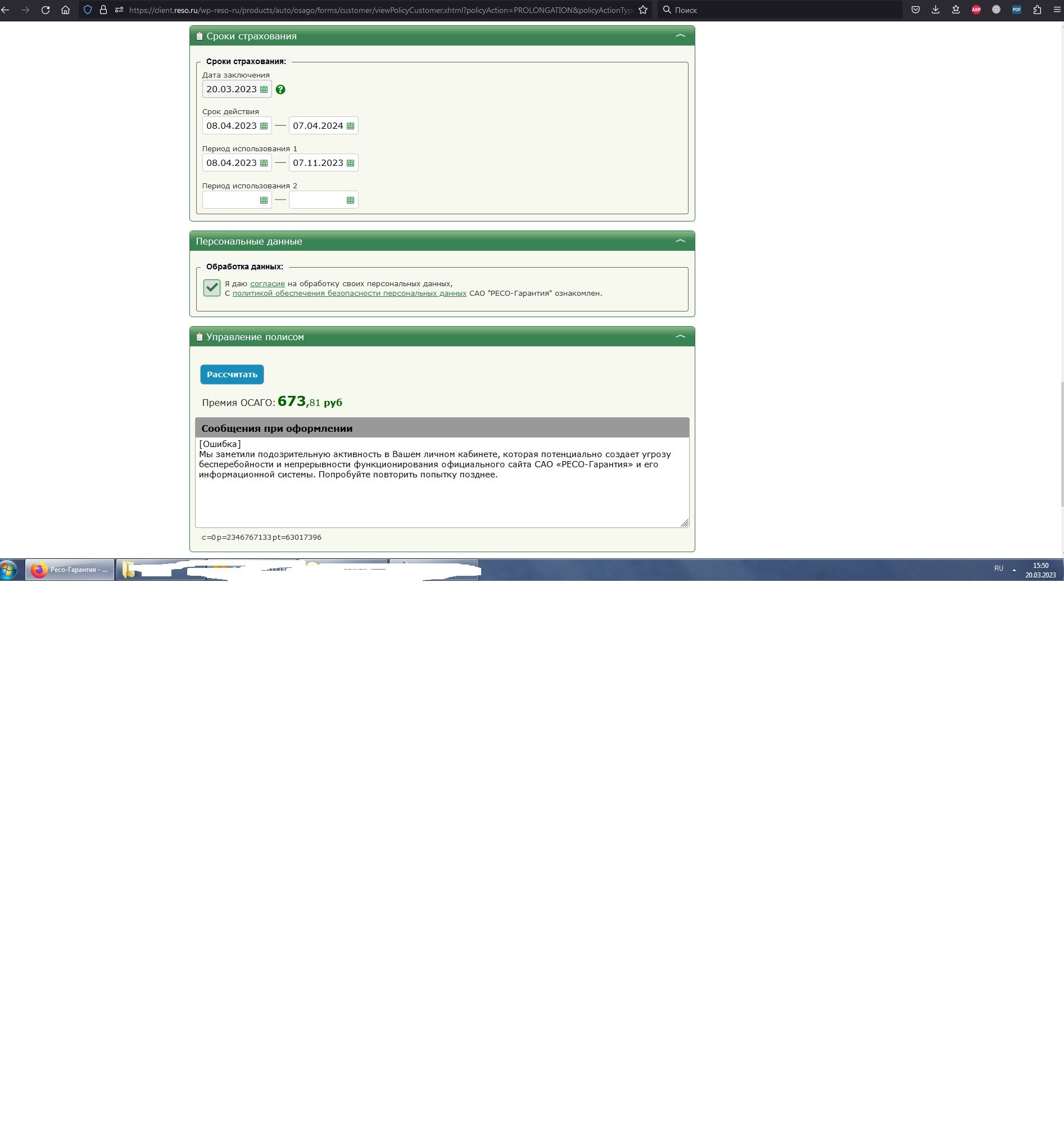 Мы заметили подозрительную активность в Вашем личном кабинете, которая потенциально создает угрозу бесперебойности и непрерывности функционирования официального сайта САО «РЕСО-Гарантия» и его информационной системы. Попробуйте повторить попытку позднее.