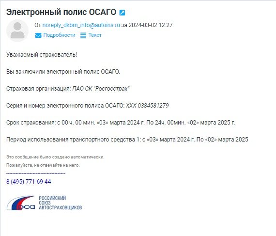 Добрый день! полис ОСАГО не отображается на сайте РСА ХХХ 0384581279. чек об оплате https://lk.platfor...