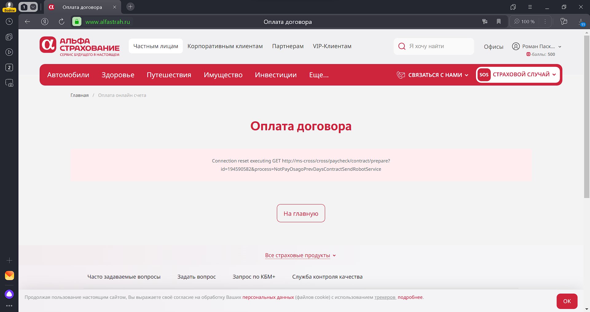 По имеющейся информации в данный момент проблема устранена, просим повторить попытку оформления полиса в данный момент через наш сайт.