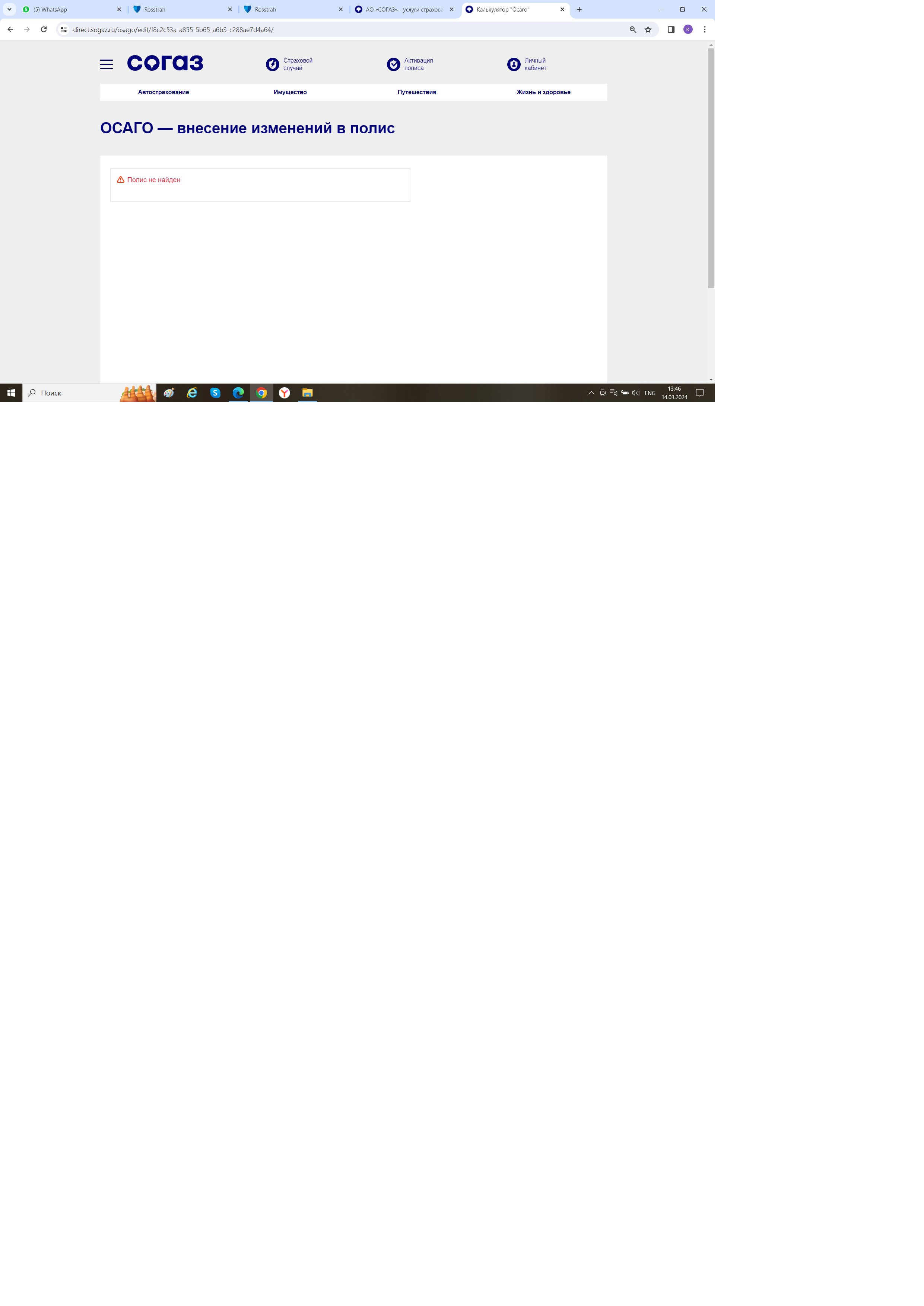 Полис добавили в кабинет, но теперь другая ошибка! Что с вашими сотрудниками, которые работают над личным кабинетом? Почему все так неудобно и плохо работает???