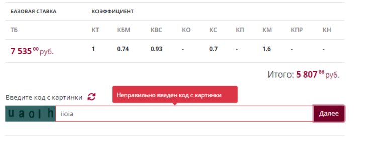 Если сaptcha введена неверно, появится соответствующее уведомление. В таком случае необходимо ввести captcha повторно.